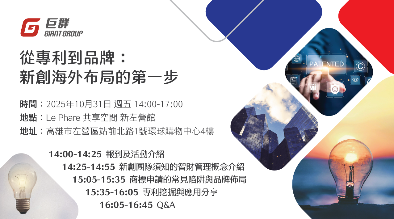 在邁向國際市場之前,企業最該準備的不是產品規格,而是「智財基礎」。從專利、商標到專利挖掘,這些不只是保護的手段,更是與投資人、通路與海外夥伴溝通的共同語言。本場講座由